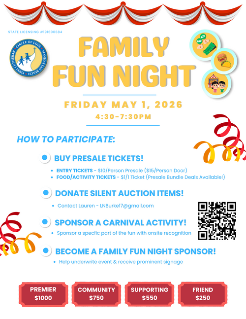 Individuals and businesses are invited to sponsor our annual Family Fun Night event.